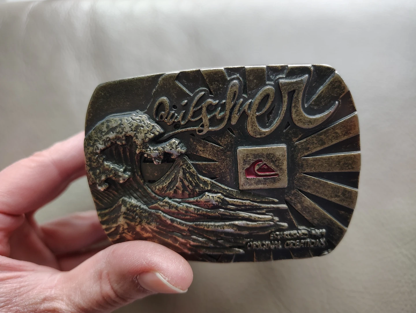 This is a Quiksilver leather belt. It's size 36 and made of leather. The buckle has a cool wave design. Great for adding some style to your outfit!