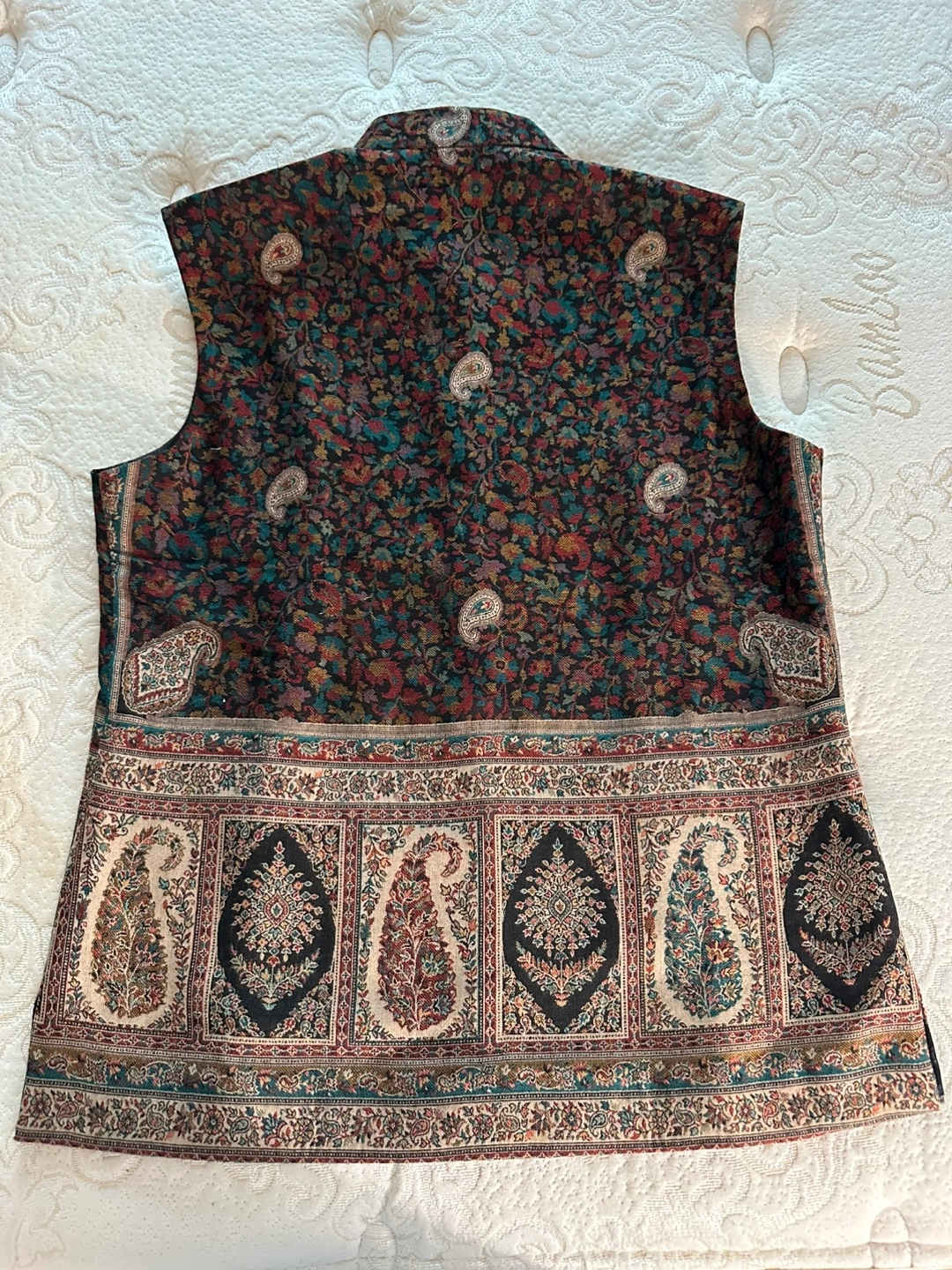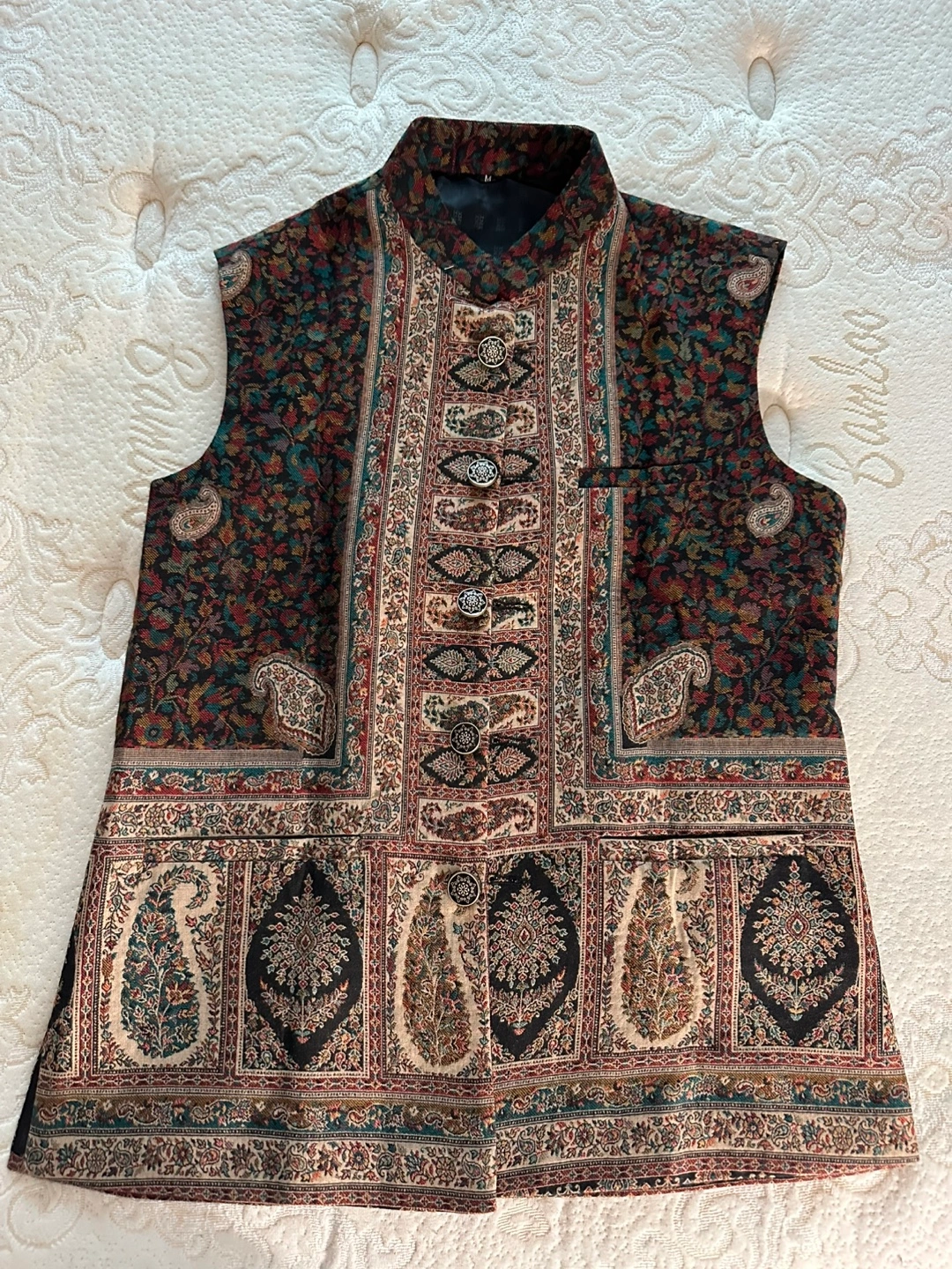 Selling a unique vest with a beautiful paisley pattern. It's in great condition and features a detailed design with multiple colours. Perfect for adding a touch of elegance to any outfit!