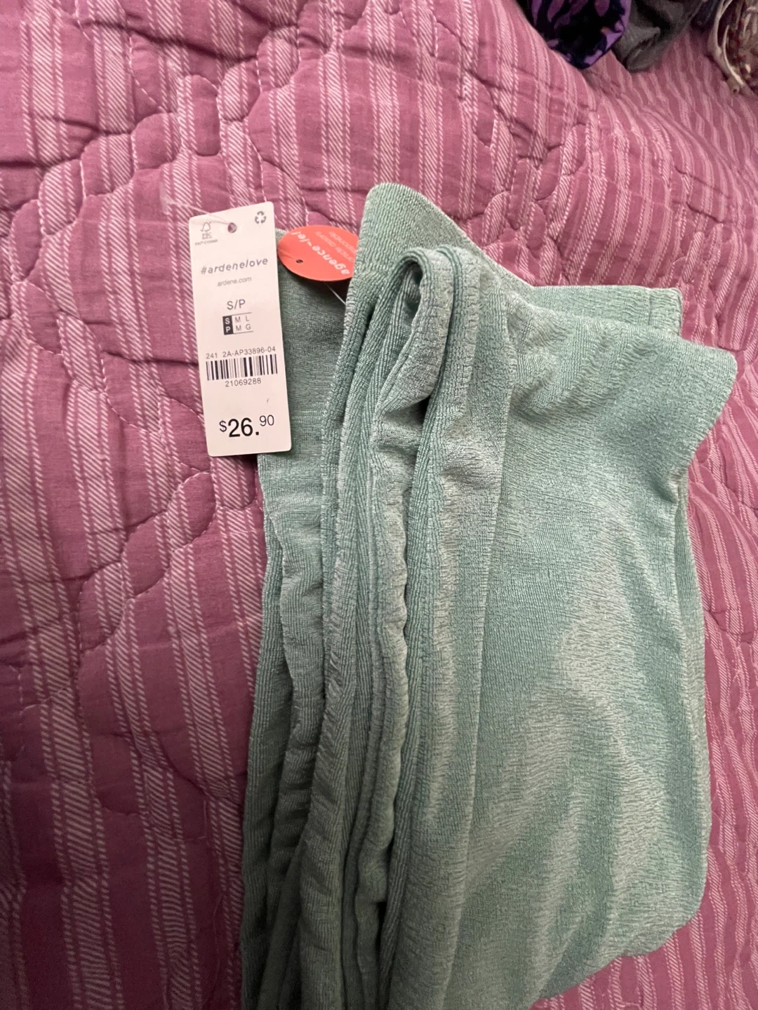 Selling a pair of Ardene flare pants in size S/P. They're a soft, light green colour and in great condition! The original price was $26.90 now selling it $15 very nice and shiny soft material pick it up Markham and Lawrence.