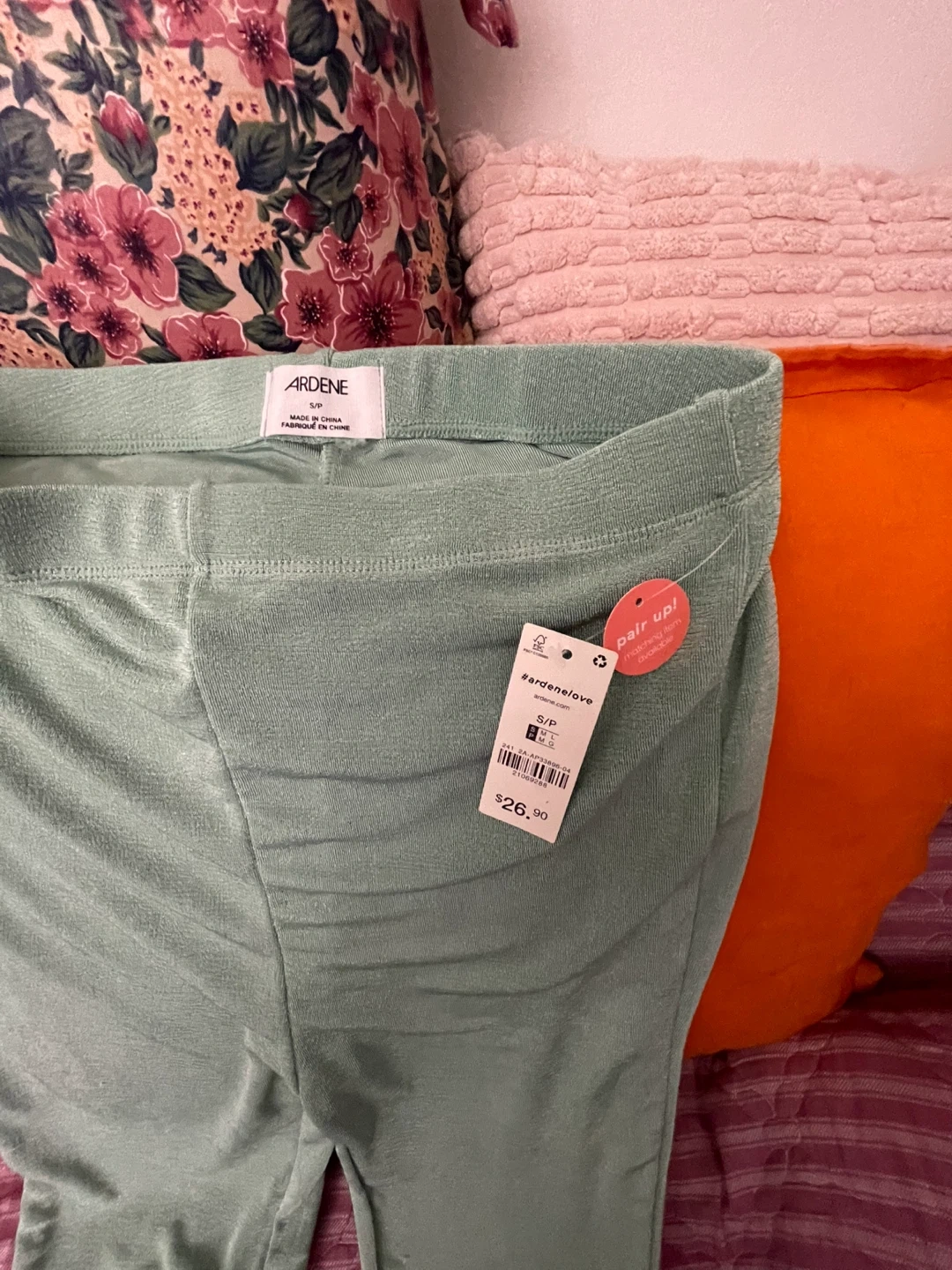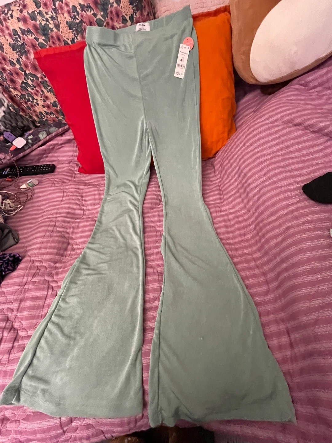 Selling a pair of Ardene flare pants in size S/P. They're a soft, light green colour and in great condition! The original price was $26.90 now selling it $15 very nice and shiny soft material pick it up Markham and Lawrence.
