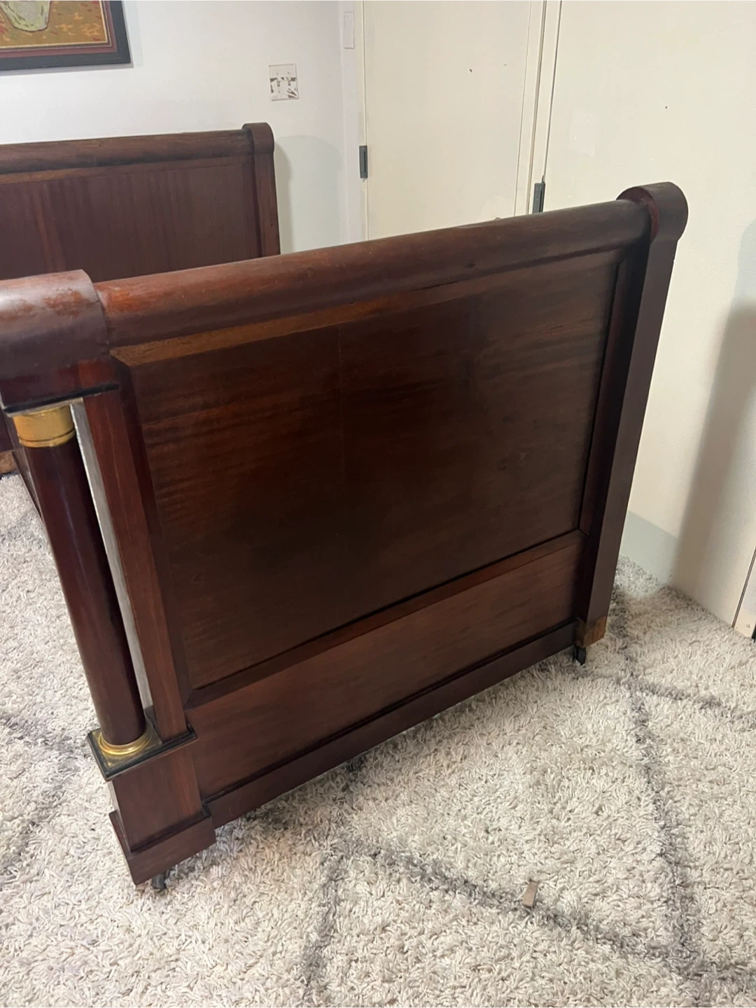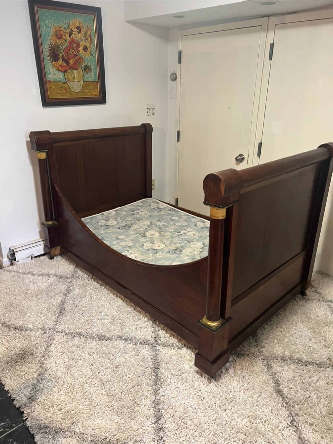 This bed frame is very old possibly from the 17th or 18th century. From history people were small in size due to factors like nutrition, diet, and living conditions as a result beds were made to reflect their size. This bed is part of that time era. Due to its age this frame has significant wear and imperfections. Please refer to the photos for further and what you see is what is included. If you are collection this will be great addition to your profile.