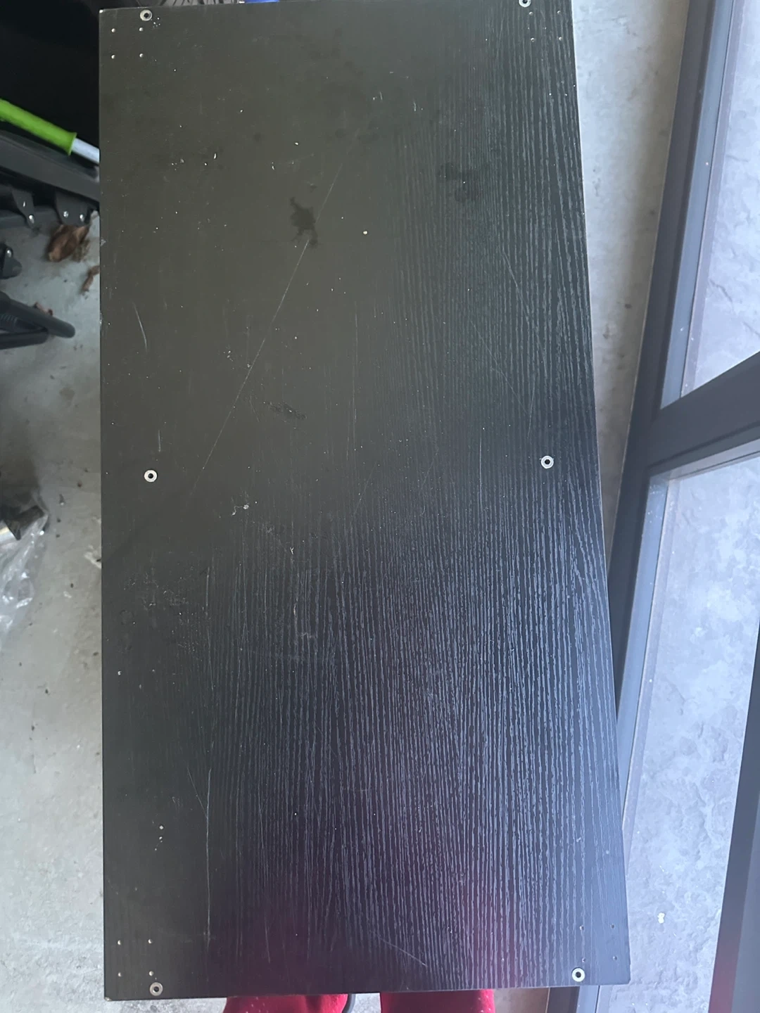 Selling a black TV stand or media console. It has a few shelves and a drawer for storage. There are some scratches on the top and sides, as shown in the pictures, but it's still functional and sturdy. Perfect for a living room or entertainment area