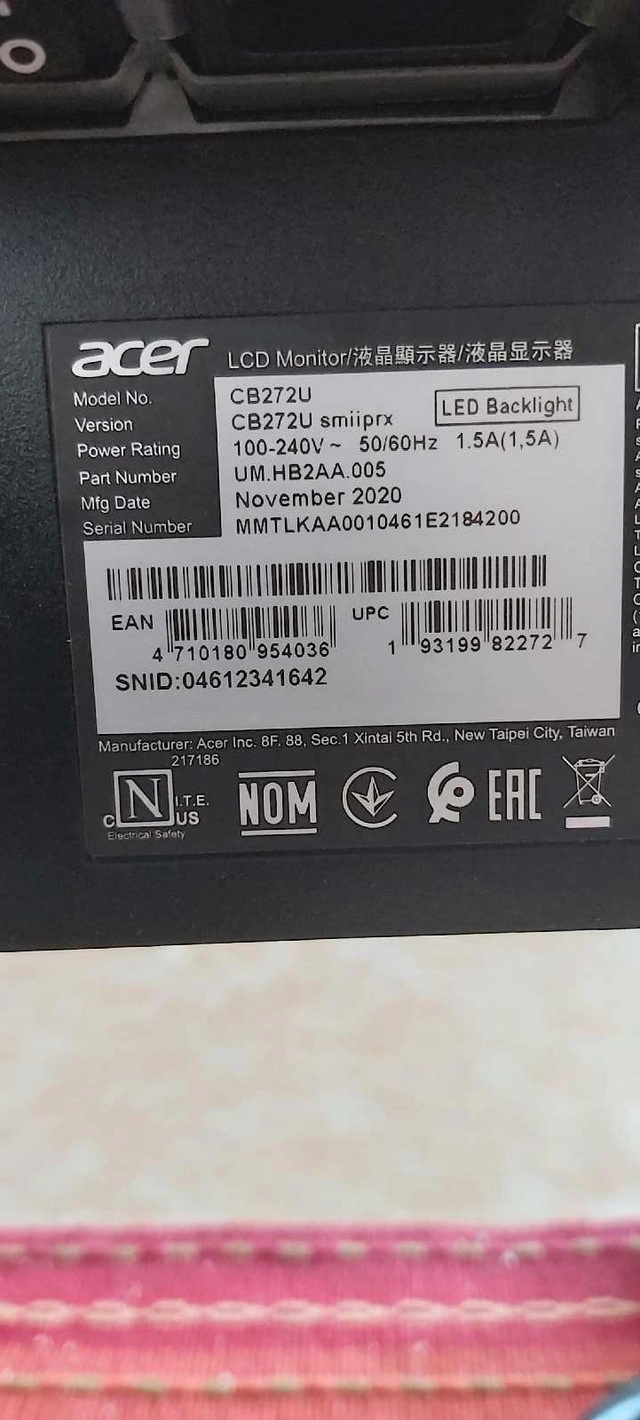 26Selling an Acer CB272U LCD Monitor. It's in great condition and ready for a new home. It was manufactured in November 2020. No problems with it.