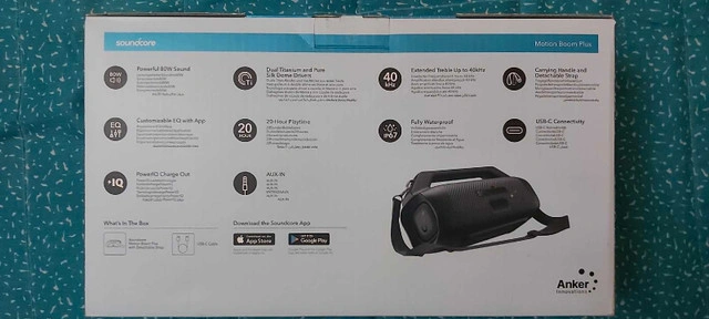 26Great condition Soundcore speaker complete with its box. Packs quite a bang and sure to fill your party events. Leave a message, text, or call if interested. Thanks! For Sale By: Owner