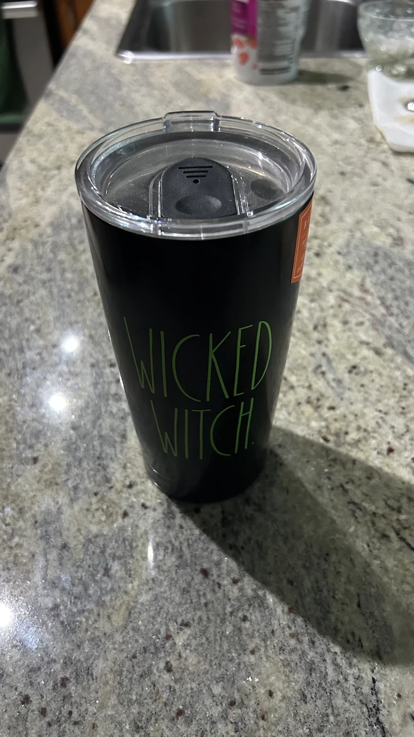 Selling a Rae Dunn 'Wicked Witch' tumbler. It's a great cup for everyday use or for Halloween! Also selling a floral patterned bottle and a grey Ello cup as well