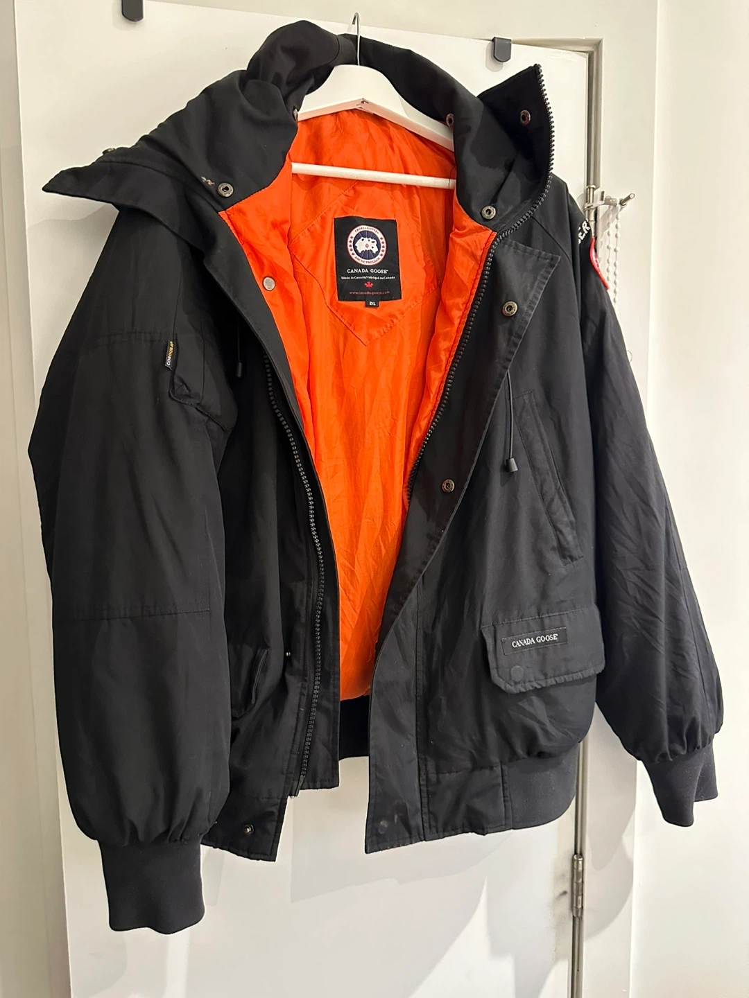 🔥 Rare collaboration piece between Canada Goose × OVO (October’s Very Own). This is the Chilliwack Bomber, iconic for its bold orange lining and premium build. • Size: 2XL • Condition: 9/10 – gently used, no rips, stains, or major flaws • Note: Hood fur is not included (priced accordingly) • Color/Details: Black exterior with bright orange lining, official OVO × Canada Goose collab patch inside • Why it’s special: Limited collab, highly sought after by collectors and streetwear fans 💵 (open to reasonable offers) I’m large and it looks good on me 📍 Pick up Woodbine Station