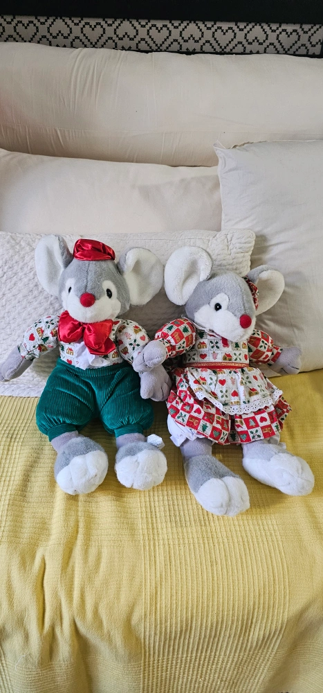 1000+Selling a cute vintage mouse plush set. They are dressed in festive holiday outfits. Perfect for collectors or as a charming addition to your holiday decor!