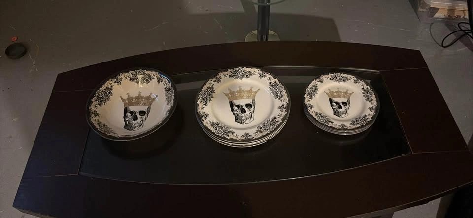 Perfect for the upcoming holidays or for everyday use Sure to impress friends and guests 1 10 inch Bowl 4 11 inch Plates (small chip in one) 4 8.5 inch Plates $75 obo