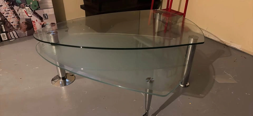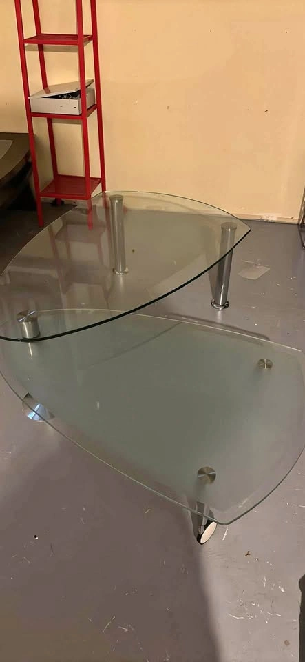 Stylish and functional glass coffee table in great condition. No cracks or major damage – just normal light wear. Great for living rooms, offices, or apartments. Dimensions (Approx.): Length: 49 inches Width: 39 inches Height: 17 inches $60 obo