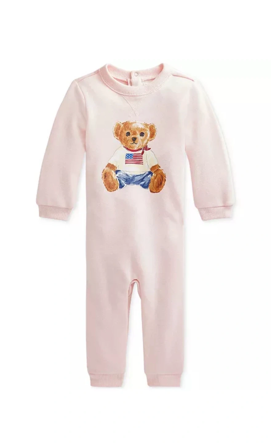 Super cute baby pink Ralph Lauren onesie with a teddy bear design! It's in great condition and perfect for keeping your little one cozy
