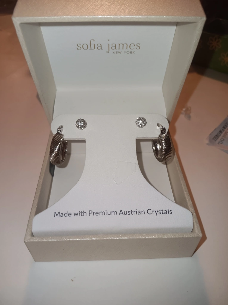 756Selling a set of Sofia James earrings, including both hoop and stud styles. These earrings are made with Premium Austrian Crystals and come in the original box.
