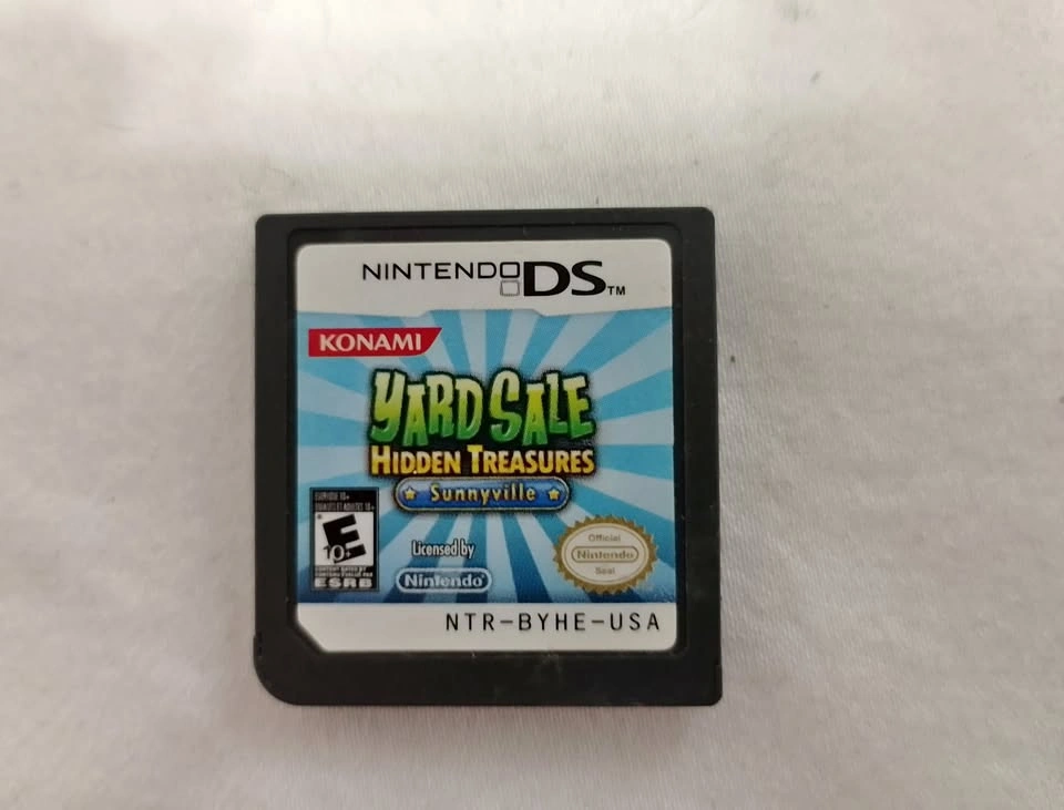 77Yard Sale Hidden Treasures: Sunnyville is a hidden object game designed to be played with the DS stylus and touch screen. In most puzzles, the item list and a picture of the entire scene is shown in the top screen, with a zoomed-in, interactive display in the bottom screen. Following a lighthearted backstory through quirky small-town neighborhoods, players visit 12 locations, panning, scanning, and tapping out items hidden in each detailed, yard-sale scene. Bonus stars hidden in each scene award keen-eyed players with hints, and new missions are unlocked by beating time limits. No Case