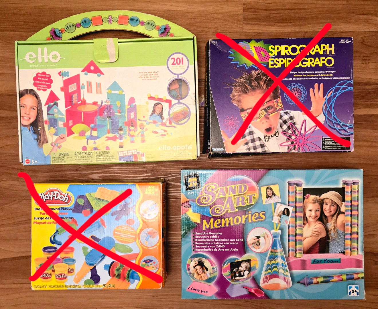 - Price is for all 1. Ello - winner of multiple educational toy awards - excellent condition - didn't count the pieces but they look like they're all there 2. Sand Art - diy sand art kit - create multiple projects - the vase is missing otherwise brand new 3. Spirograph -SOLD - the 3D glasses are missing, otherwise excellent condition 4. Play-Doh Tools Set -SOLD - no play doh included, tools only - pls see pic for included tools, some pieces missing but rest are in excellent condition