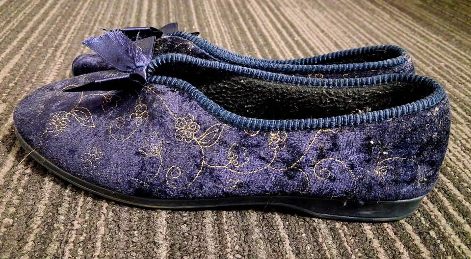 Navy blue Tender Tootsies flats with bow. Perfect for casual wear.
