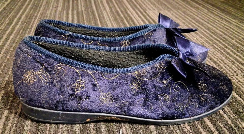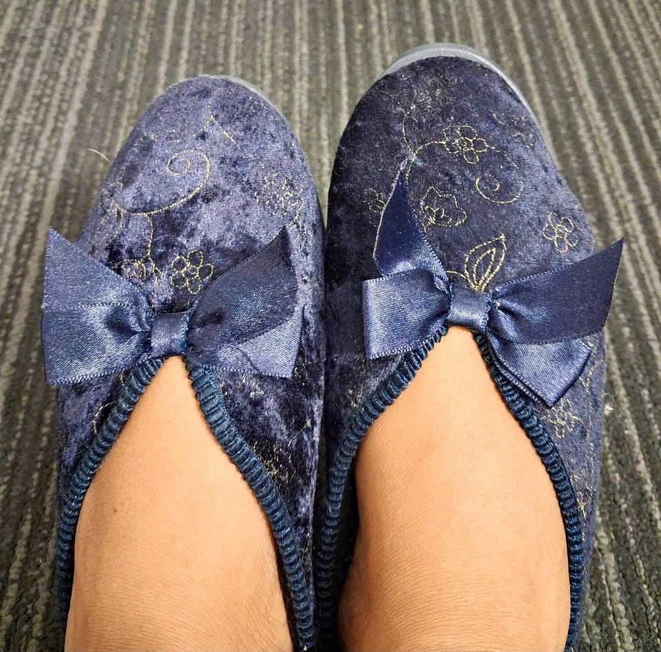 Navy blue Tender Tootsies flats with bow. Perfect for casual wear.