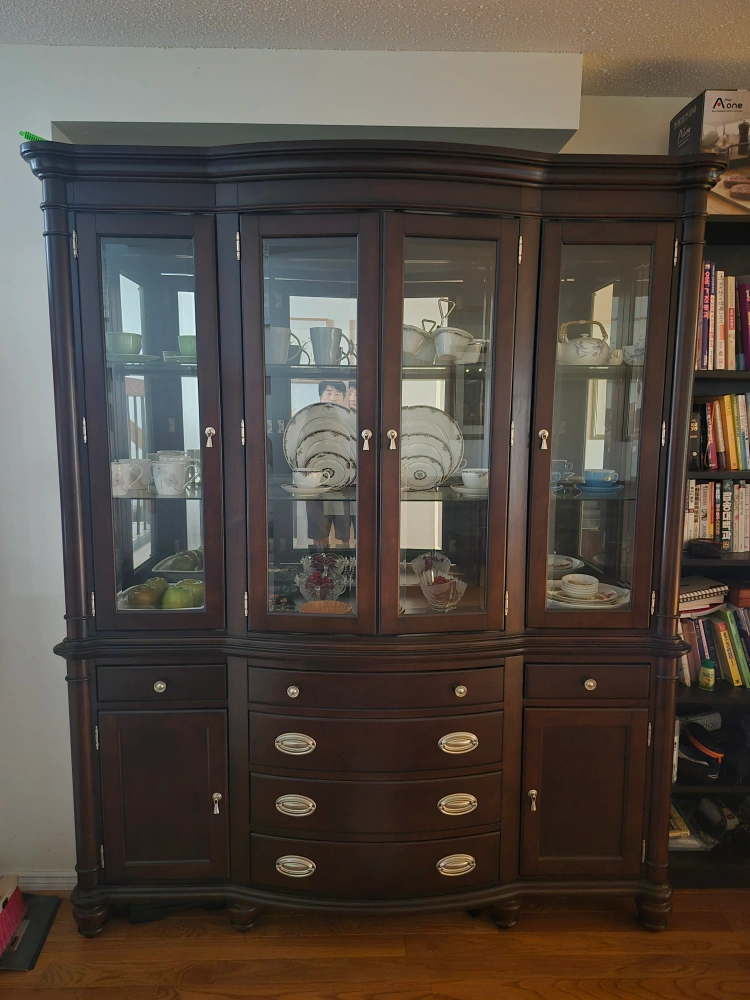 Solid Pine Cabinet – Glass Door, Shelves & Drawers