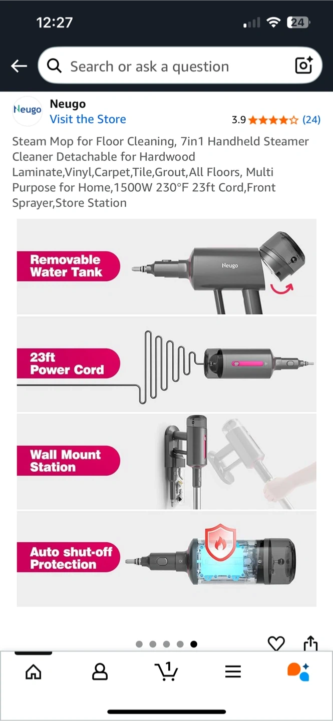 Keep your home sparkling clean with this Neugo 7-in-1 handheld steam mop! It's perfect for hardwood, laminate, vinyl, carpet, tile, and grout. With 1500W of power and a 230°F steam temperature, it'll blast away dirt and grime. It features a removable water tank, a 23ft power cord, and auto shut-off protection. Comes with multiple attachments for all your cleaning needs!