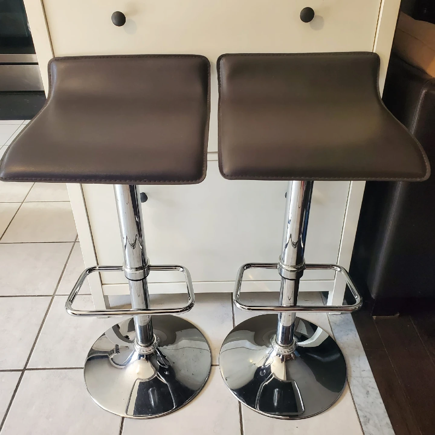 2x Bar Stools leather espresso dark chocolate color Adjustable