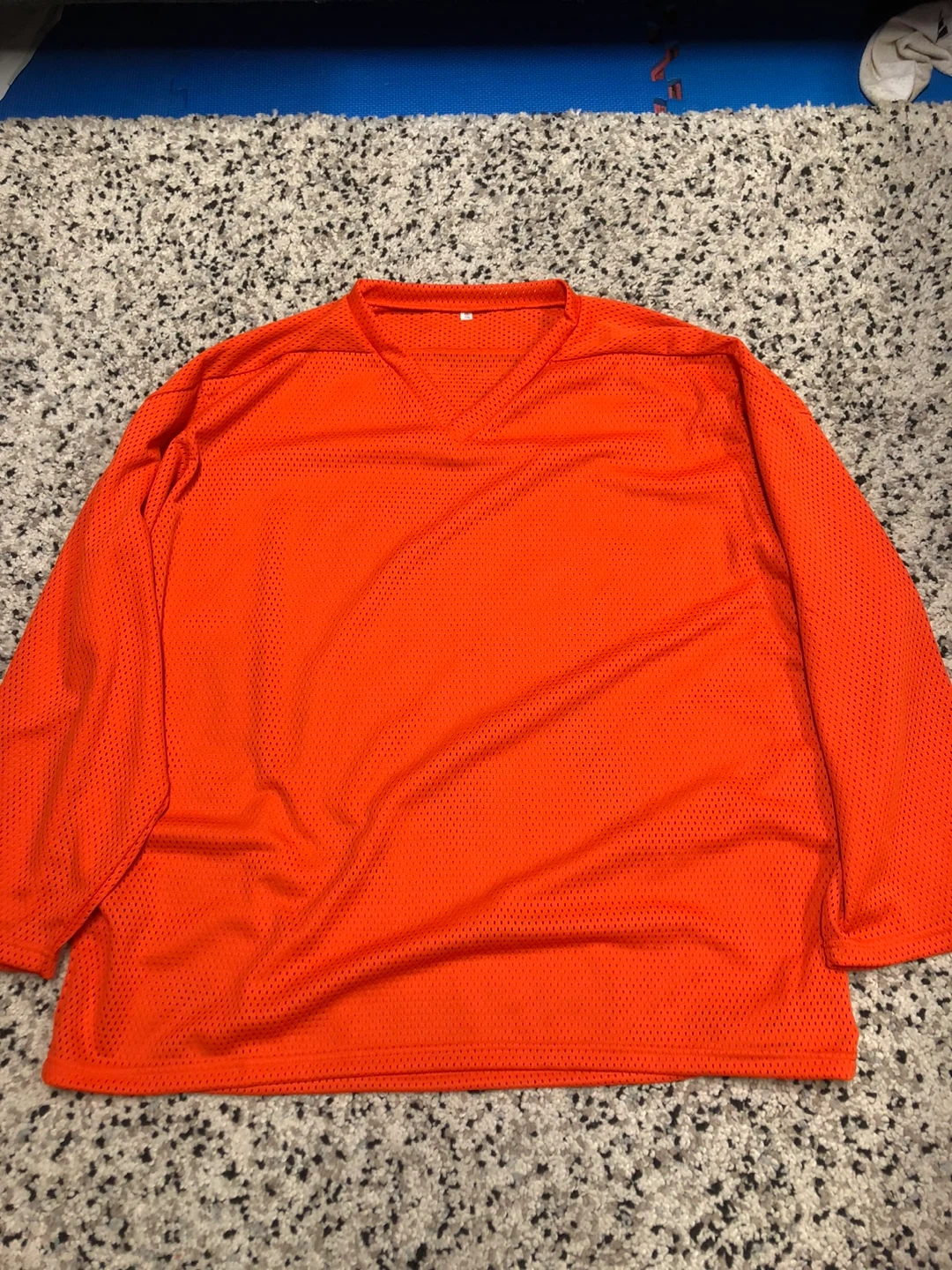 Selling a set of 10 men’s XXL hockey jerseys in pylon orange, all clean with no hockey smell.