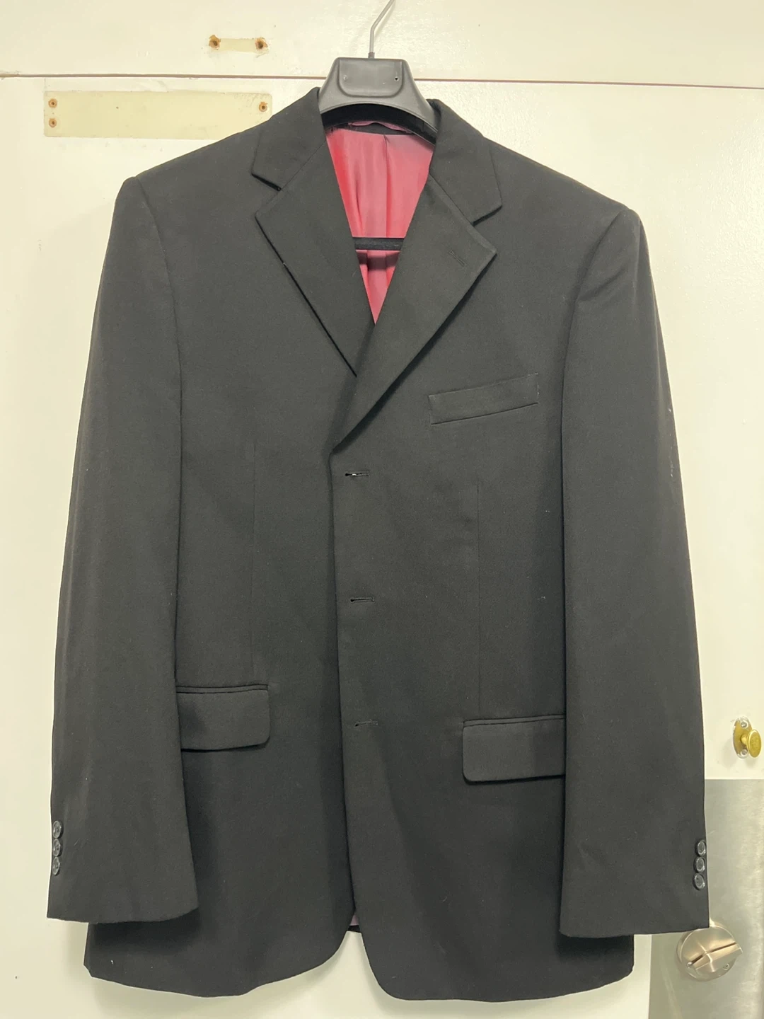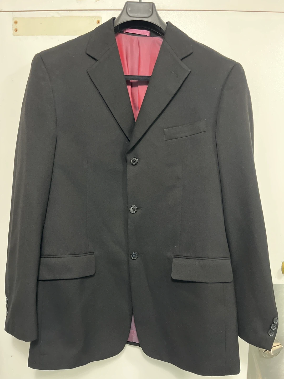 Selling a Massimo Moda blazer in black. It's in perfect condition like new and ready for a new home! The lining is a nice flourescent burgundy colour.
