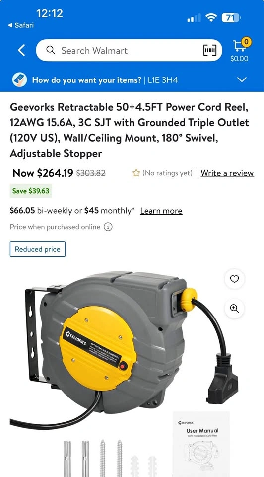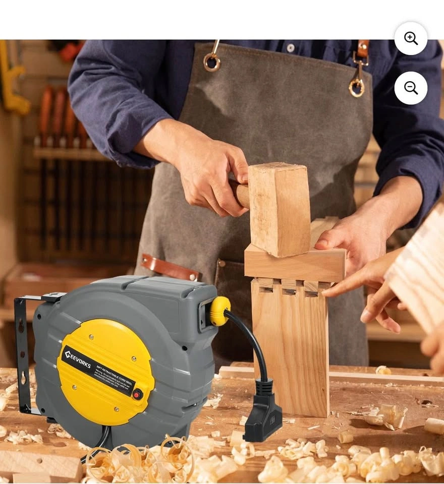 New in box Geevorks retractable 50+4.5ft power cord reel with adjustable stopper.
