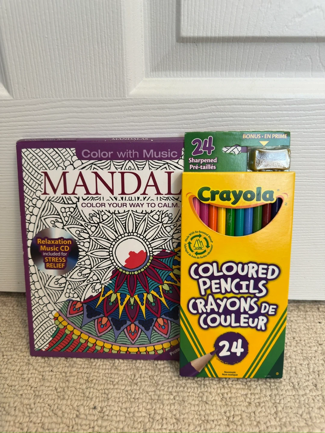 Get creative with this Mandala colouring book that comes with a relaxation music CD included for stress relief! Also included is a box of Crayola 24 coloured pencils, pre-sharpened and ready to use