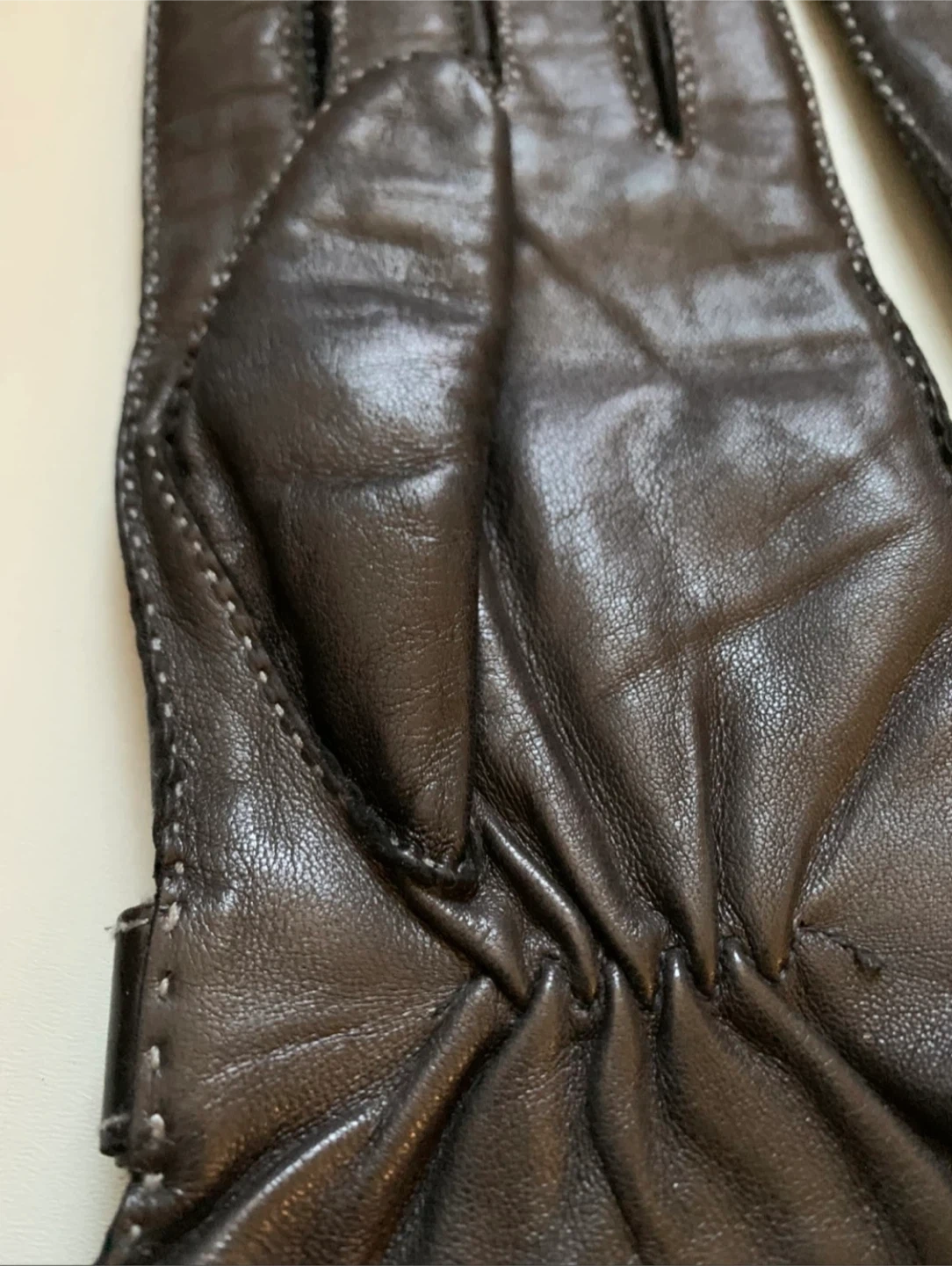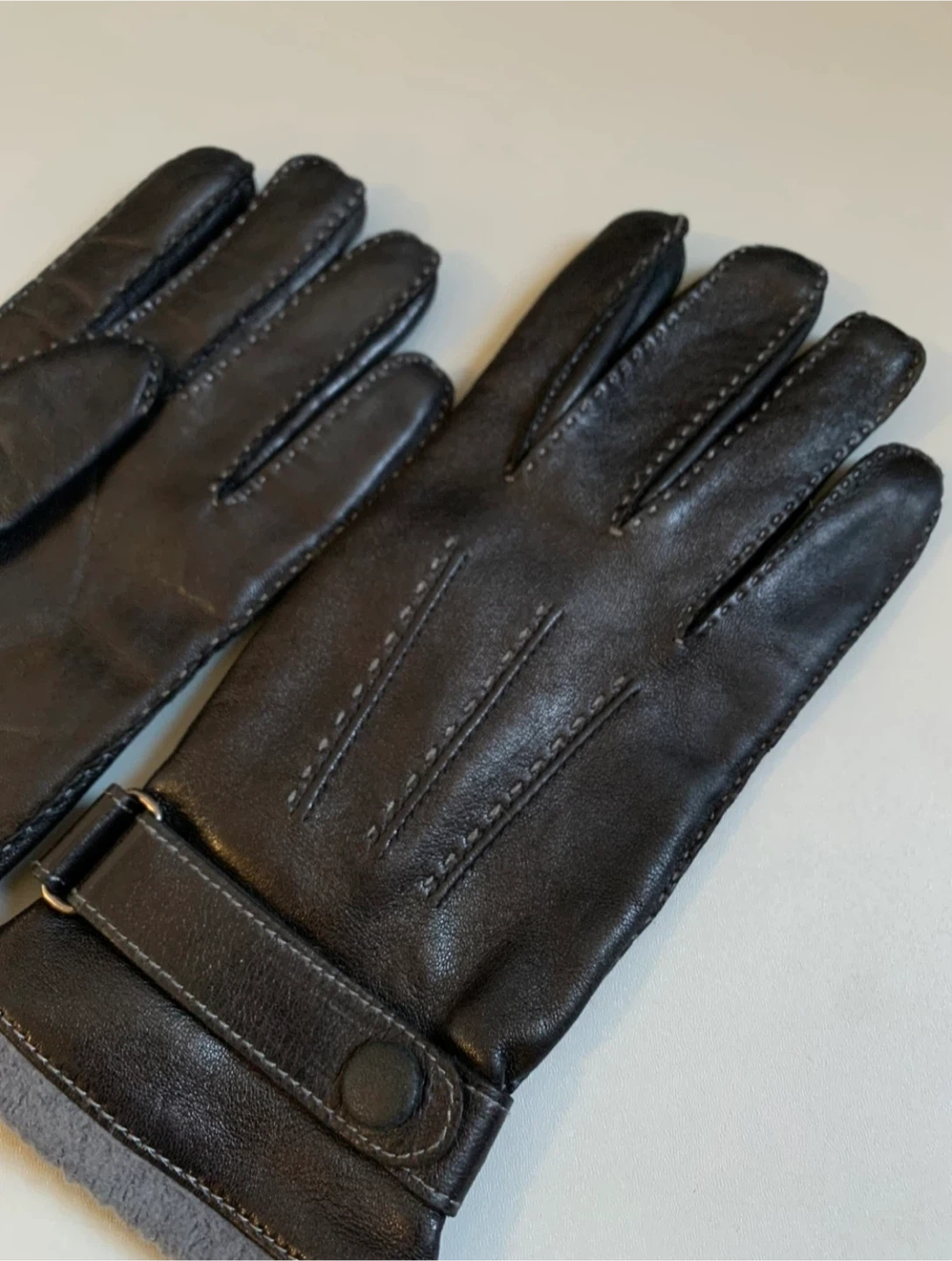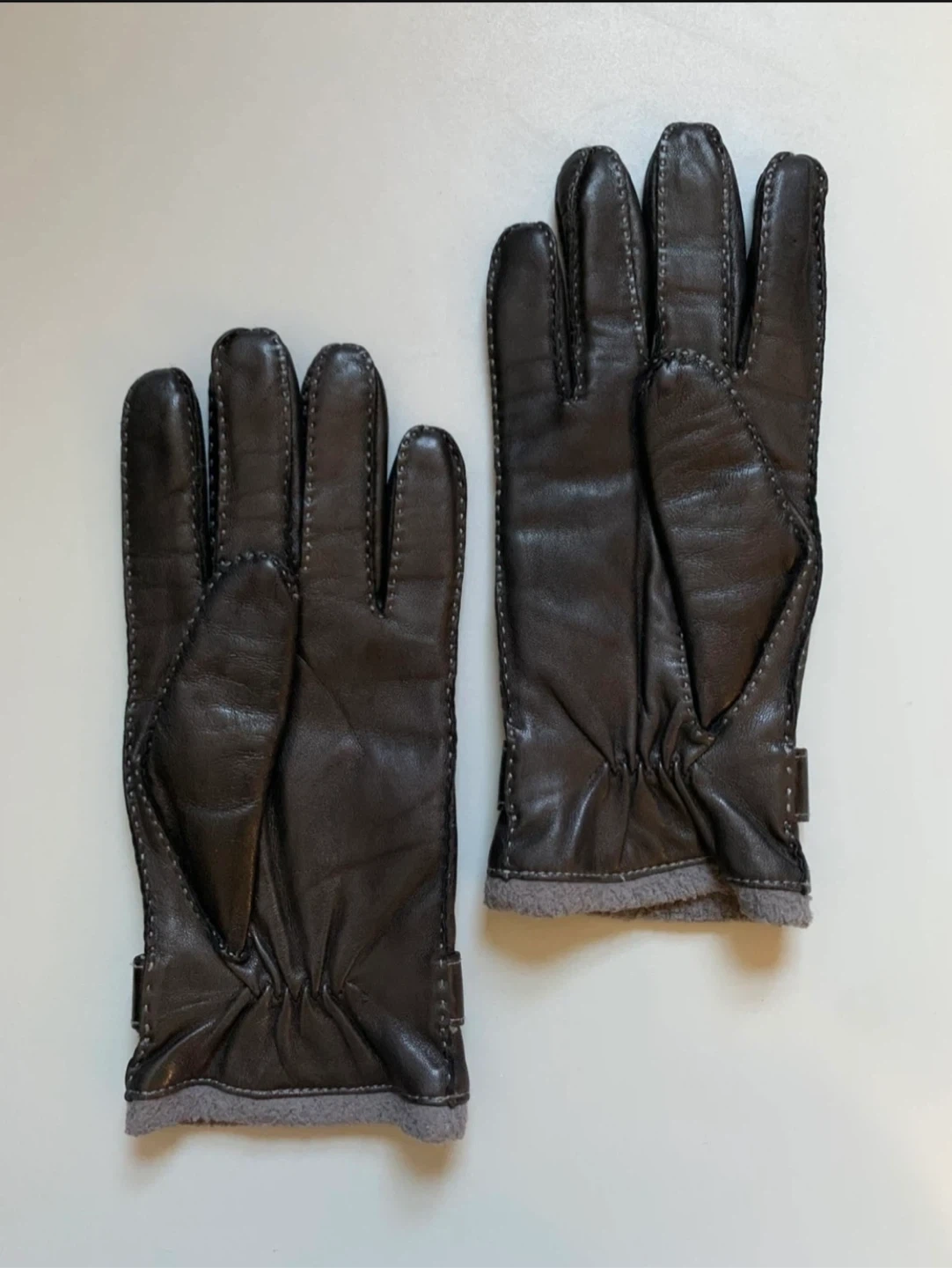 •Danier classic style smooth supple rich brown genuine leather gloves with soft fleece insulated liner.