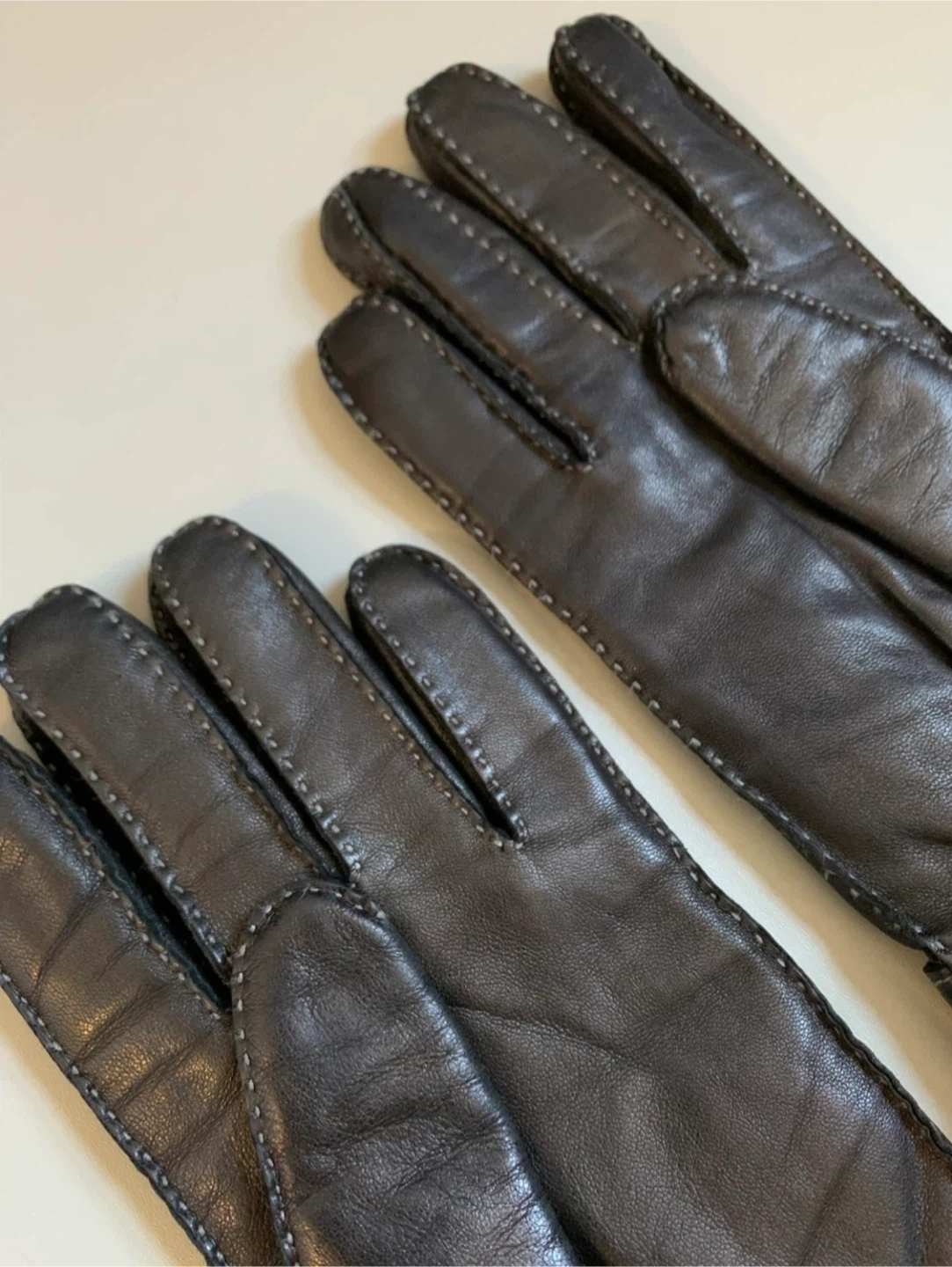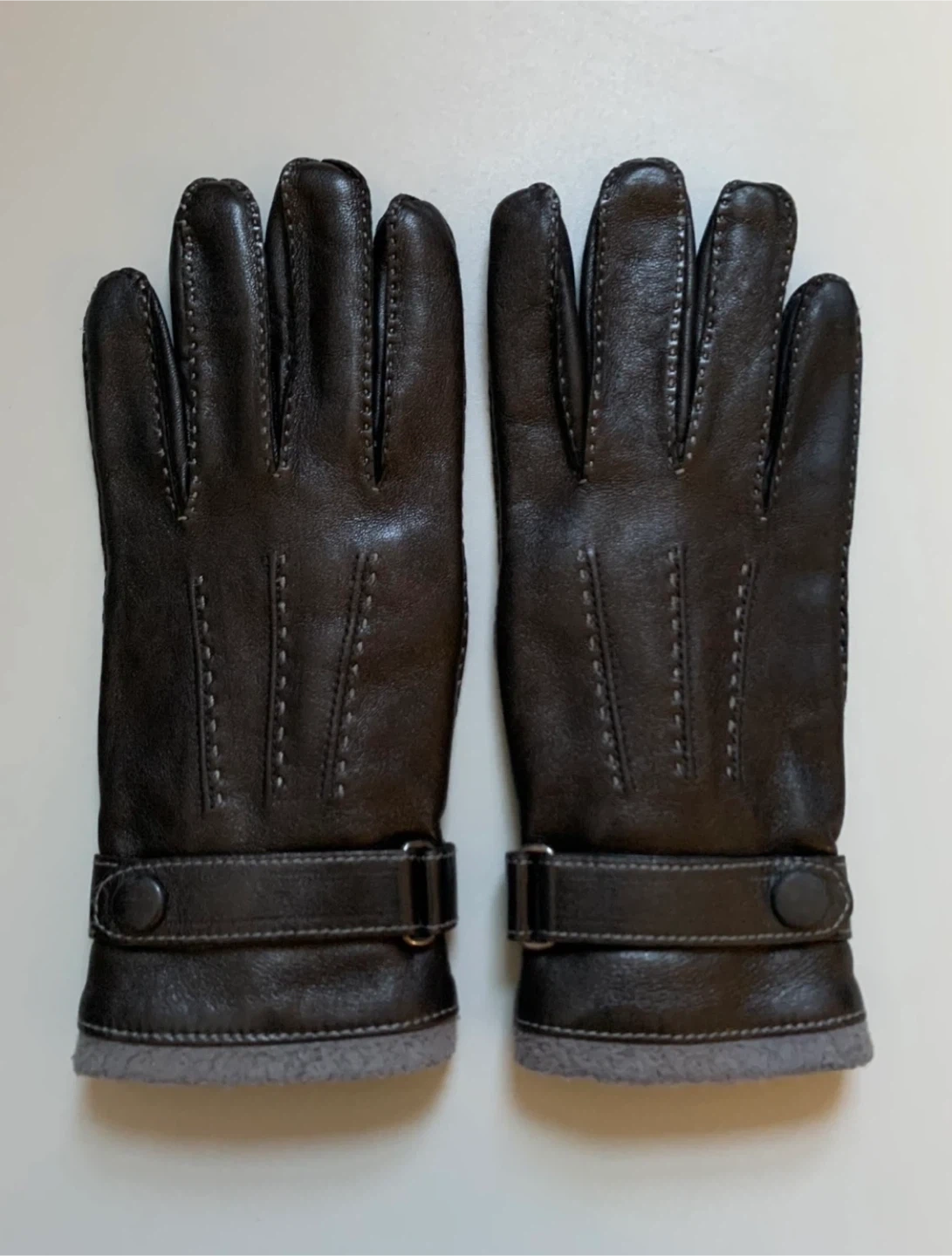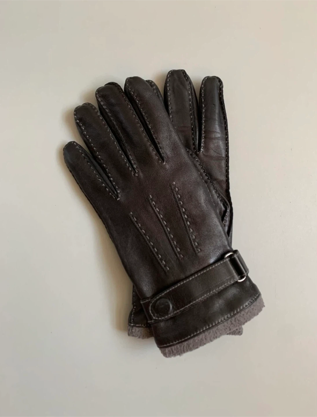 •Danier classic style smooth supple rich brown genuine leather gloves with soft fleece insulated liner.