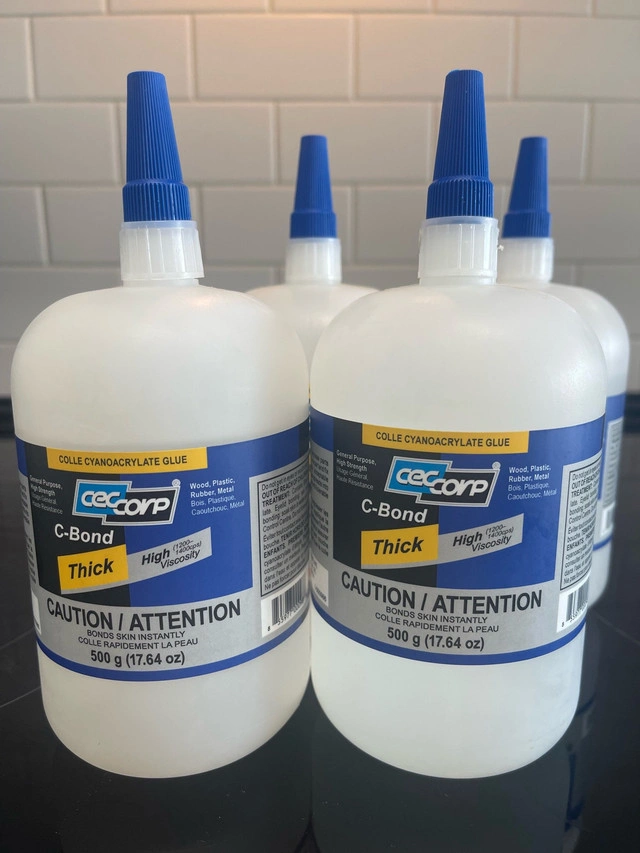 C-Bond Thick | High Viscosity Cyanoacrylate Glue by CECCORP Super Glue 500g (17.64 oz). C-Bond Thick features a high 1200-1500 cps viscosity for superior gap-filling and control, enhancing bond strength on uneven or rough surfaces. With a curing time of 15-30 seconds, it's ideal for bonding larger, heavier objects. Engineered for maximum strength, our ethyl cyanoacrylate-based instant glue combines impact resistance and a durable bond that dries transparently and clear for a clean, unnoticeable repair. Recommended for a variety of materials including metal, wood, ceramics, plastics, leather, rubber, and more. From industrial applications to everyday household repairs, C-Bond Thick is the CA adhesive for ceramic repairs, model making, crafting, and more. It effectively penetrates micro-fractures and stabilizes them, ensuring long-lasting repairs. Includes a child-resistant and anti-clog cap to prevent drying and extend shelf life, ensuring reliable and safe use each time. Let me know if you're interested!