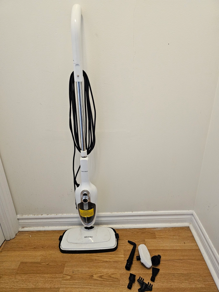 Selling a Secura steam mop in great condition! It comes with all the accessories you see in the picture. This is perfect for keeping your floors clean and sanitized with the power of steam