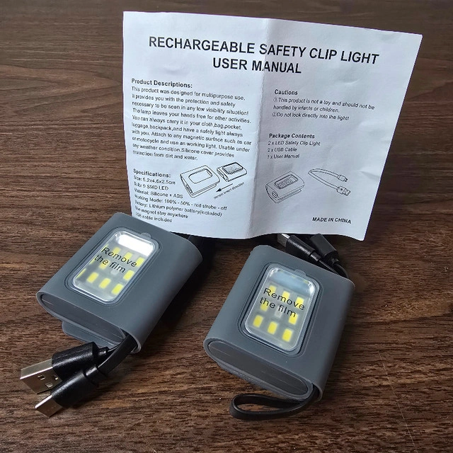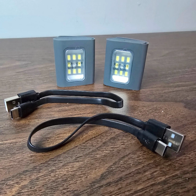 2 Pack LED Rechargeable Running Lights Safety Lights, Clip on Night Light for Night Walking, Running, Jogging. New in open box. >High Bright >Clip on & Magnet >Portable Running Light >USB Rechargeable >Drop & Water Resistant 3 setting modes: >full white brightness, >half white brightness, >red LED strobe. Gently click the power button to switch modes! Pickup in Stratford Smoke-free/Pet-free home Checkout other listings for more items