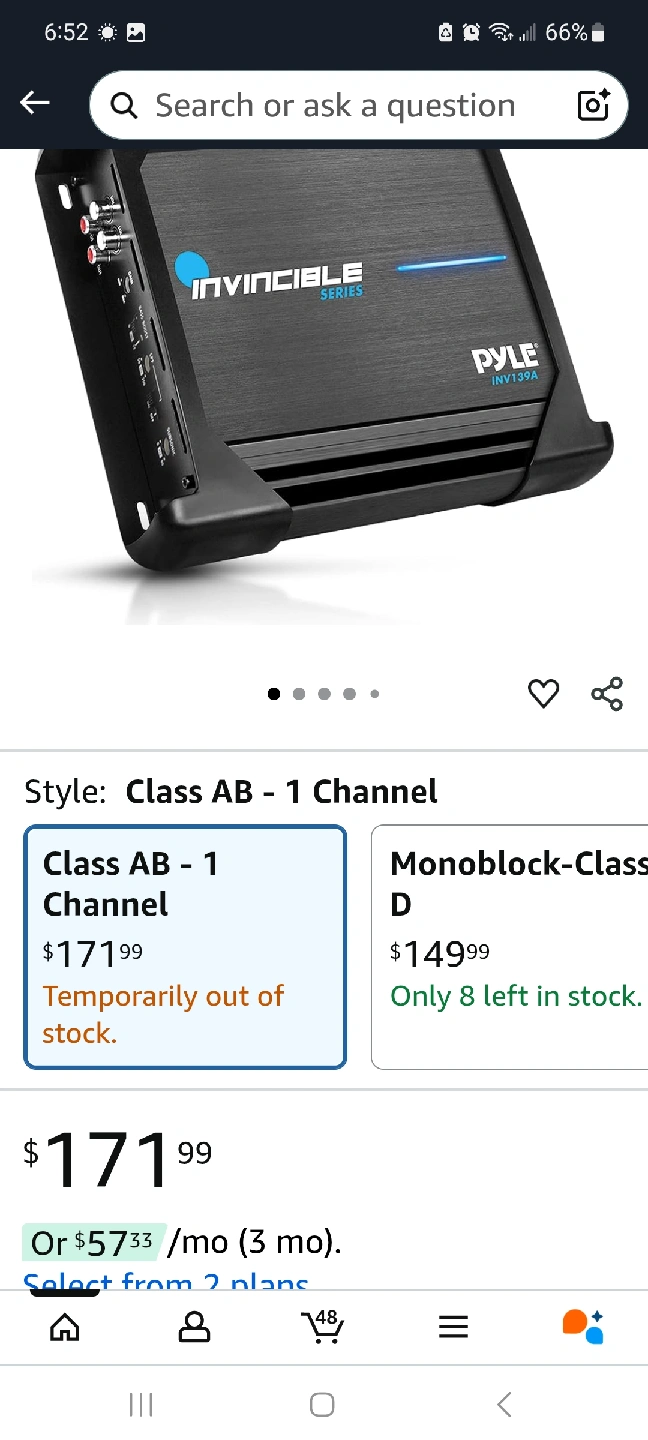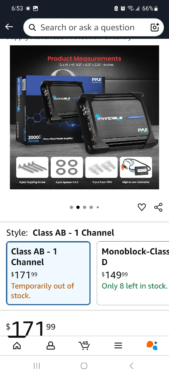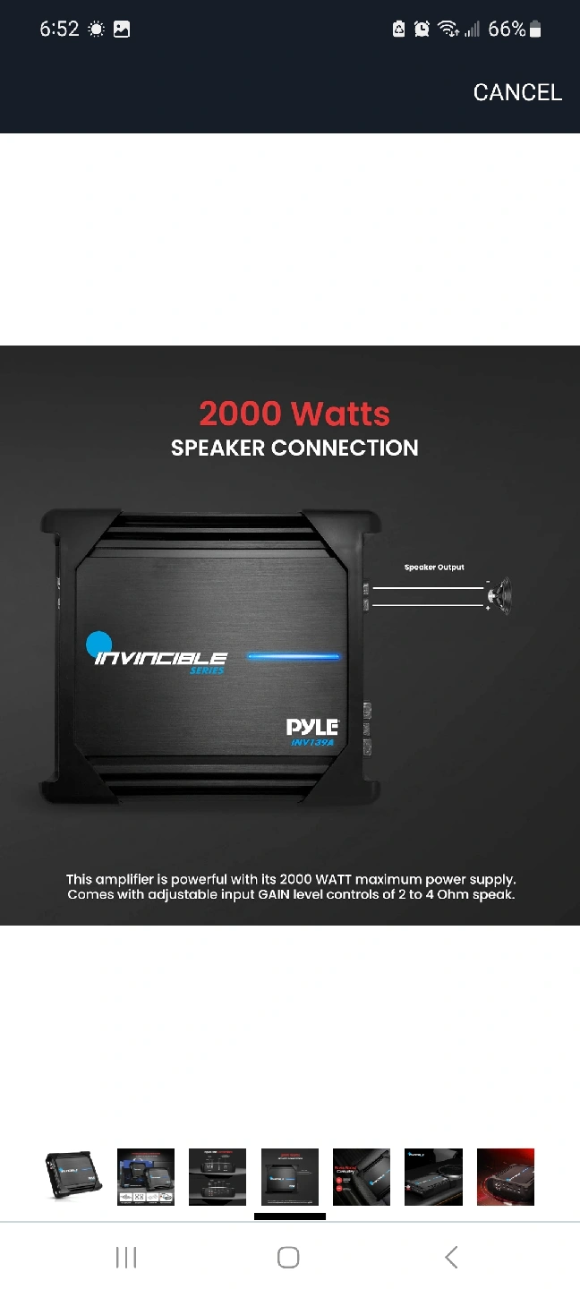 Selling a Pyle Invincible Series car amplifier. It's a powerful amplifier with a 2000 Watt maximum power supply. It also comes with adjustable input GAIN level controls of 2 to 4 Ohm speak. Product Measurements (L x W x H): 9.21" x 8.13" x 2.28"-inches
