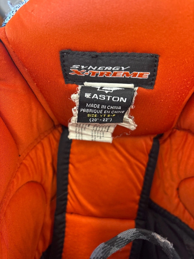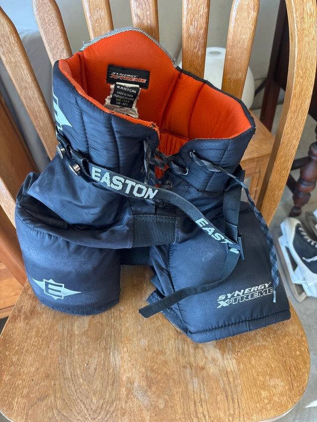 Gently used Easton Synergy Xtreme youth hockey pants, perfect for young players needing reliable protection on the ice. The pants are in good condition, ready for plenty more games and practices. Here are some details: * Brand: Easton * Model: Synergy Xtreme * Size: Youth (YT S-P (20"-22")) * Colour: Black If the ad is still up, the pants are available!