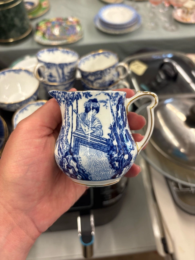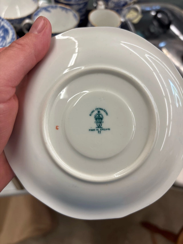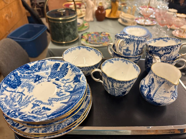 This is a beautiful Royal Crown Derby teacup set in the Imari pattern, perfect for collectors or anyone who appreciates fine china. This used set includes cups, saucers, a creamer, and a sugar bowl. The set is in good condition. There is some wear on the rims of some of the pieces. * **Brand:** Royal Crown Derby * **Pattern:** Imari * **Material:** Fine bone china Based on recent sales of similar Royal Crown Derby Imari sets on Kijiji, a fair price for this set is between $200 and $300 CAD. If the ad is up, it's still available!