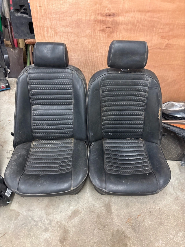 Offered are a pair of vintage bucket seats, likely from a classic car, featuring a ribbed design and black vinyl upholstery, showing signs of wear consistent with age, making them ideal for restoration or a unique automotive project. These are used seats. * Classic ribbed design * Black vinyl upholstery * Signs of wear consistent with age Remember, if the ad is up, they're still up for grabs! Given their condition and rarity, I'm pricing these at $75 which aligns with similar vintage auto seats found on Kijiji.