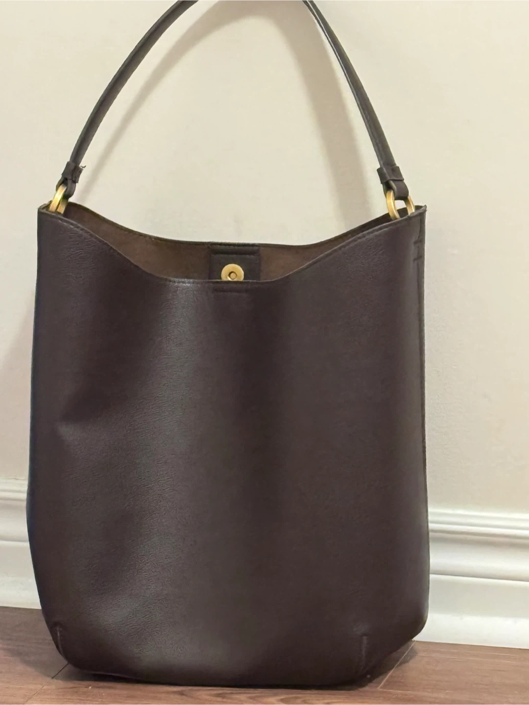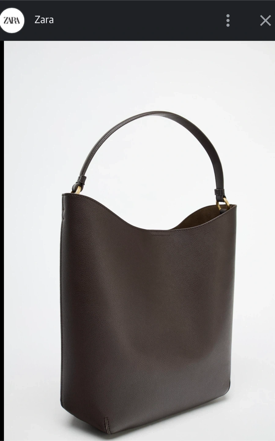 A stylish Zara brown bucket bag! This bag is perfect for everyday use and can hold all your essentials. Great for school and work