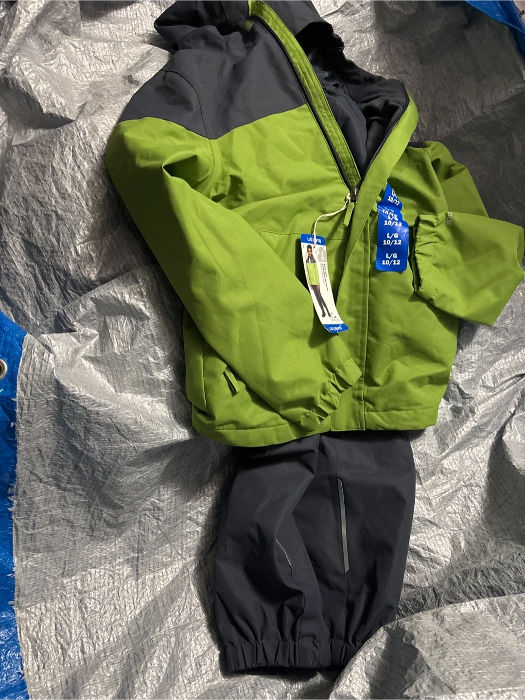 Keep your little one dry and stylish with this Paradox boys' rain suit! It's a size L (10/12) and features a water-resistant and wind-resistant design. Perfect for those rainy Canadian days!