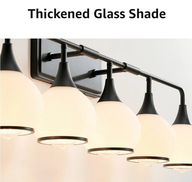 HAHZT Black Bathroom Light Fixtures 5-Lights Vanity Lights with Milky White Frosted Glass Shade Bathroom Vanity Light 39.2 inch Wall Sconce Lighting Bath (Exclude E26 Bulbs)