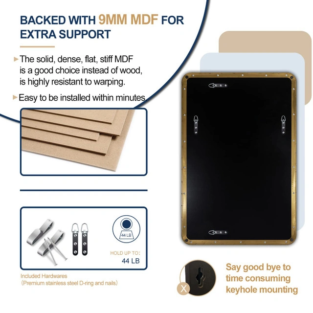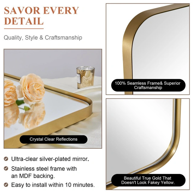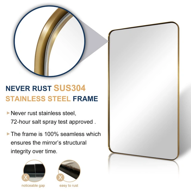 Brand new mirror in original box with hanging hardware. Retails at Walmart for $249 ($220 + tax). Save your money. Pickup from south London. ANDY STAR Gold Bathroom Mirror, 24''x36'' Brushed Brass Metal Frame Rounded Corner Wall Mirror,Rectangle Wall Mounted Mirror Glass Panel Hangs Horizontal or Vertical for Bathroom, Vanity, Washroom Product details: Brand: ANDY STAR Room type: Bathroom Shape: Rectangular Product Dimensions: 91.4L x 61W x 2.5D Centimetres Frame material: Metal Style::Modern Features: STURDY 23LBS METAL BATHROOM MIRROR: our fully sealed metal frame & simple design endow the mirror shockproof, more stable & longer working life. The sturdy stainless frame would protect the mirror and the floating gap adds elegance and class to the bathroom. PREMIUM QUALITY MATERIAL: the solid stainless steel frame + no-distortion HD mirror to deliver clear reflection & 9mm thick TSCA certified anti-corrosion backboard to strengthen the glass for safety. The fingerprint-proof frame requires little maintenance thanks to durable scratch- and stain-resistant water paint. We use commercial level material to provide a perfect solid mirror to customer AMAZING CRAFTSMANSHIP BRASS MIRROR: An artistic display on its own, this mirror is a beautiful part of any home decorating scheme. Bring simple sophistication to any room with our 24’’x36" floating glass modern round corner gold metal framed mirror. The plate glass mirror floats in the frame surrounded by a thin 1/12" gap. Use this brass mirror for bathroom, vanity mirror, or entry to add light and enhance the beauty of any room in your home instantly! EXCELLENT PACKAGING & EASY TO INSTALL: This ANDY STAR wall mirror for bathroom in fully protected packing with PE bag, poly foam and master box to ensure they arrive in perfect condition, it pass 10 point drop test and comes with four pre-installed hooks allow it easy to install both horizontal or vertical