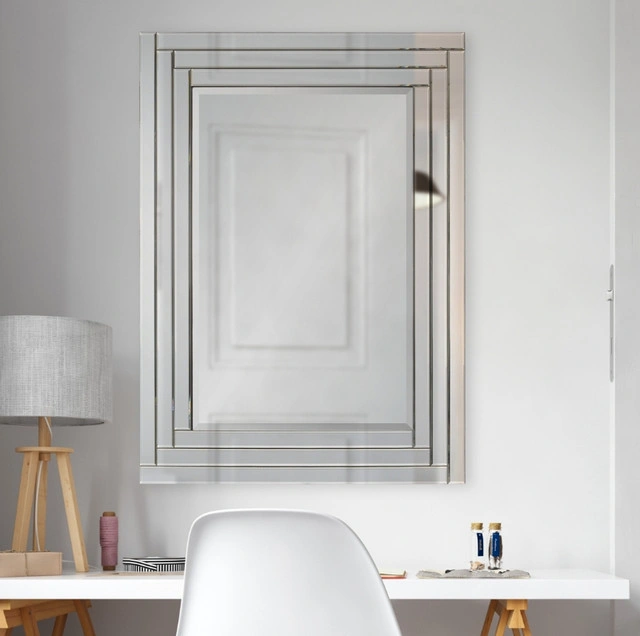 Brand new mirror in original box with hanging hardware. Pickup from south London (White Oaks). Retails for $350 ($310 + tax). This contemporary design features a dimensional beveled-mirror "step" frame and a beveled center mirror. With its sleek look and clean lines this mirror is sure to dress any space. Features: Framed Frame Material: All Glass Frame Finish: All glass Hanging Direction: Both ways Product Size: 24 x 36 Inches Model: MT1290 Artist: Jonathan Wilner Finish: All Glass Material: All Glass Dimensions: 24" W x 36" H Weight: 22 lbs. Collection: Edessa