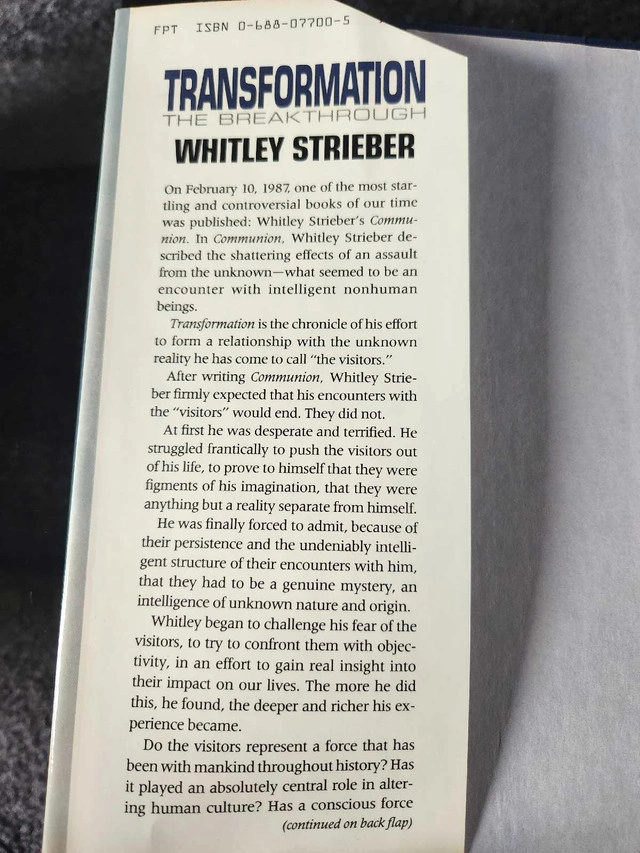 Transformation - The Breakthrough, by Whitley Strieber Hardcover. Excellent condition. Check out my other ads for more books on the UFO/Alien topic.