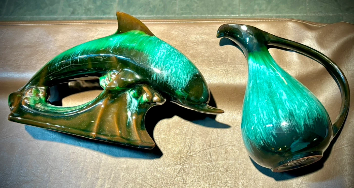 Selling a beautiful vintage ceramic set featuring a dolphin figurine and a pitcher.