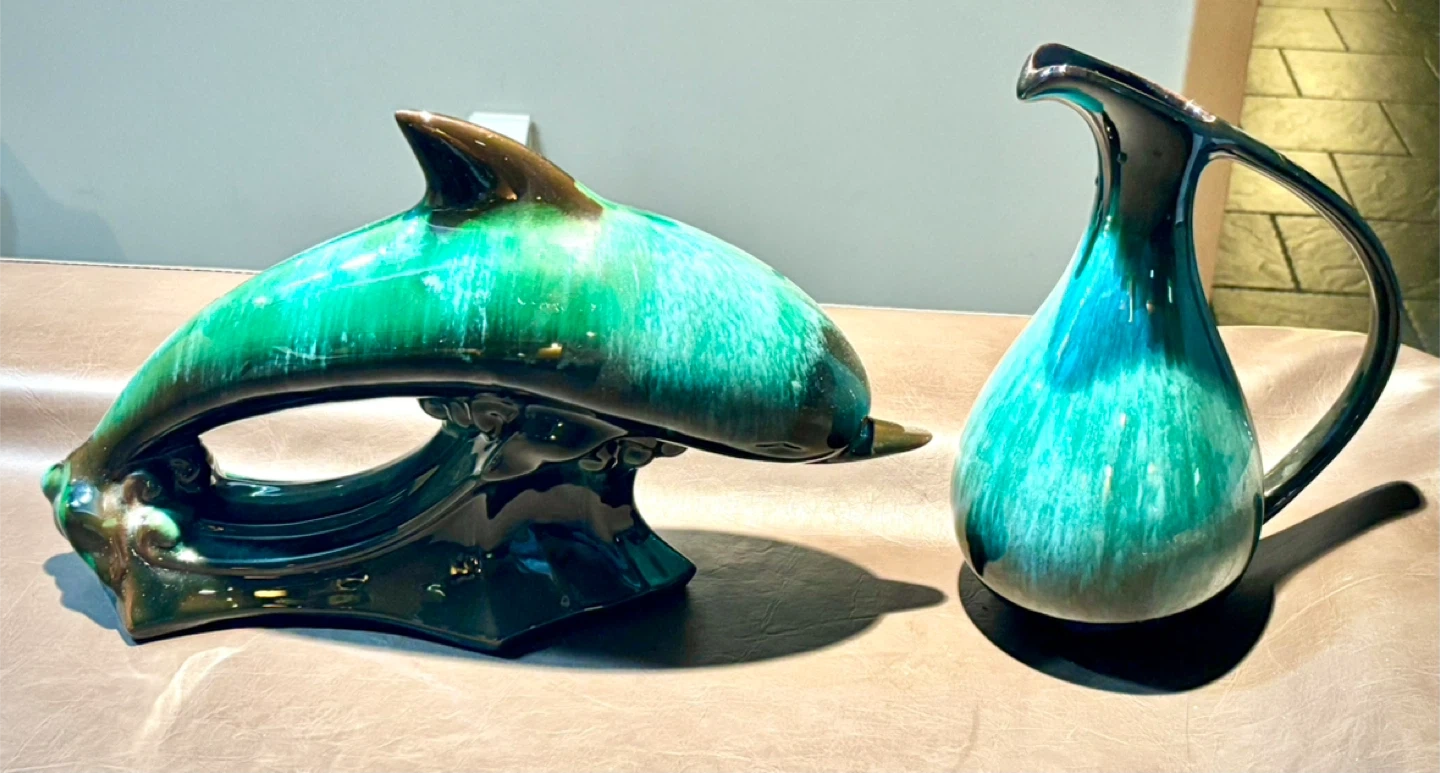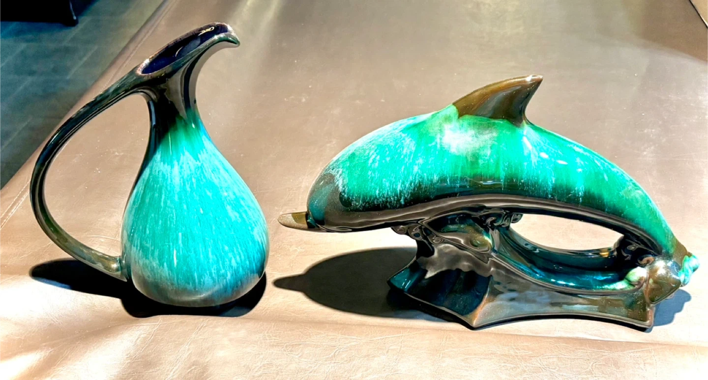 Selling a beautiful vintage ceramic set featuring a dolphin figurine and a pitcher.