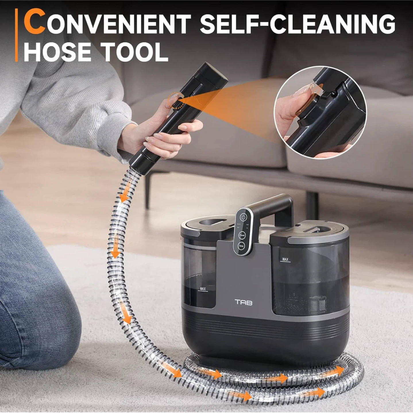 Portable carpet/upholstery cleaner. Hot and cold settings. Can be used with any non-foaming cleaning products. Great for mattresses, furniture and carpet. Purchased in 2024 and used once. Original price was $239.