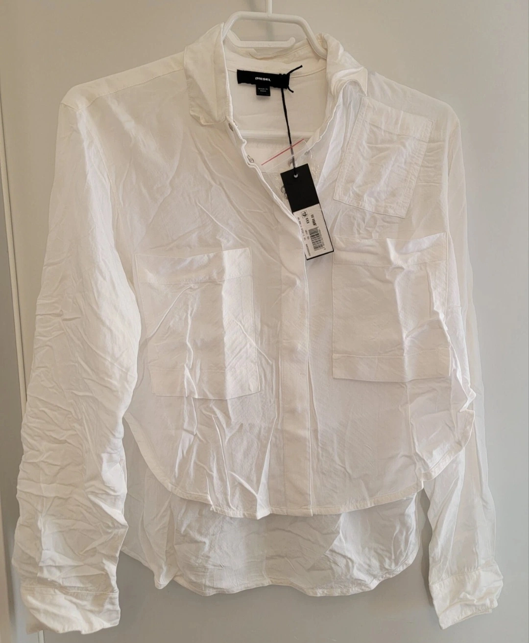✨ A chic, minimalist Diesel women’s top crafted from 100% viscose for a smooth, soft drape and luxurious feel. Designed with clean tailoring and metal button details, this top balances elegance with a modern edge — perfect for pairing with jeans, trousers, or layered under a blazer.