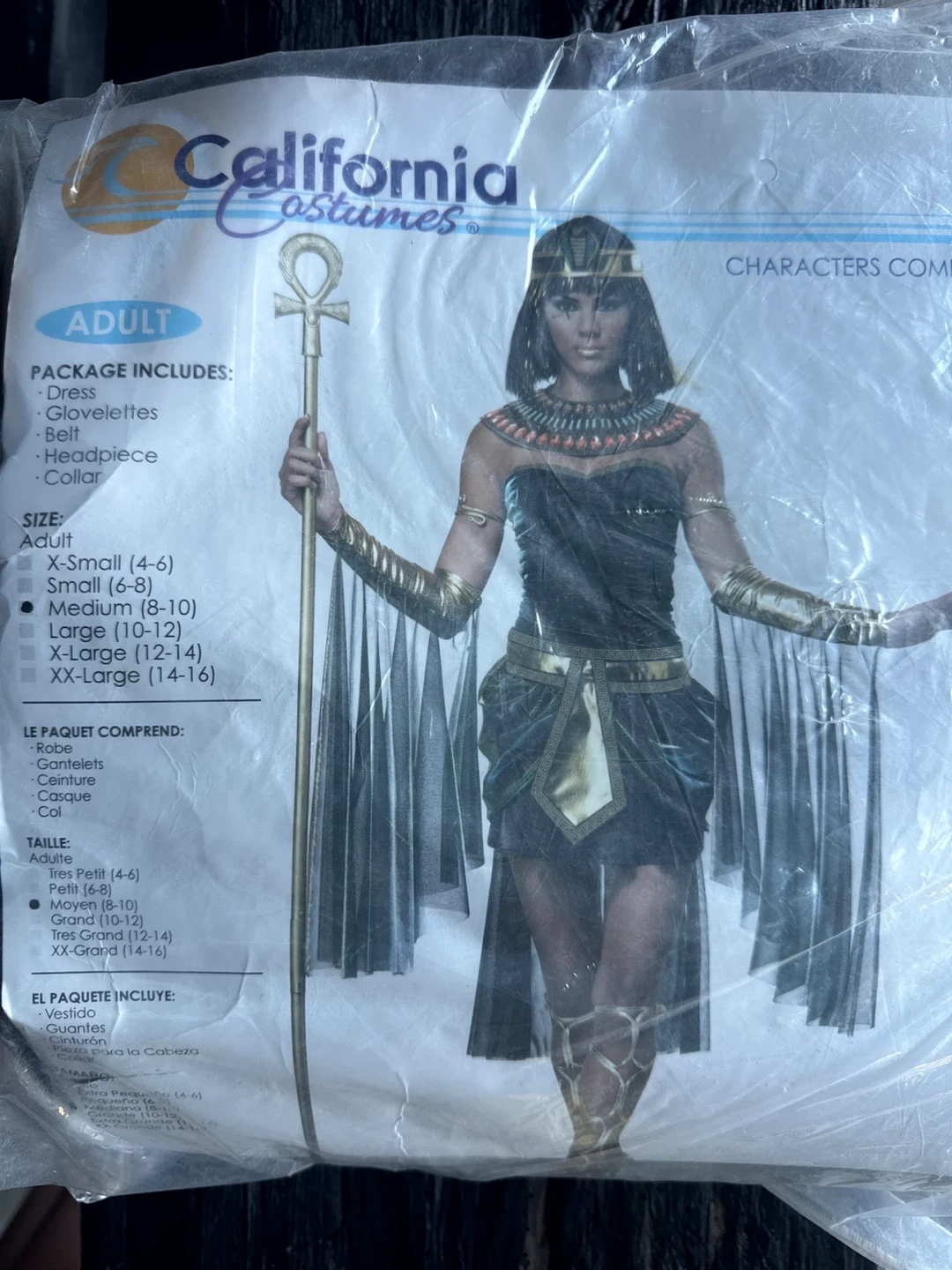 Selling a California Costumes Cleopatra costume for adults! This set includes the dress, glovelettes, belt, headpiece, and collar. It's a size medium (8-10). Perfect for Halloween or costume parties