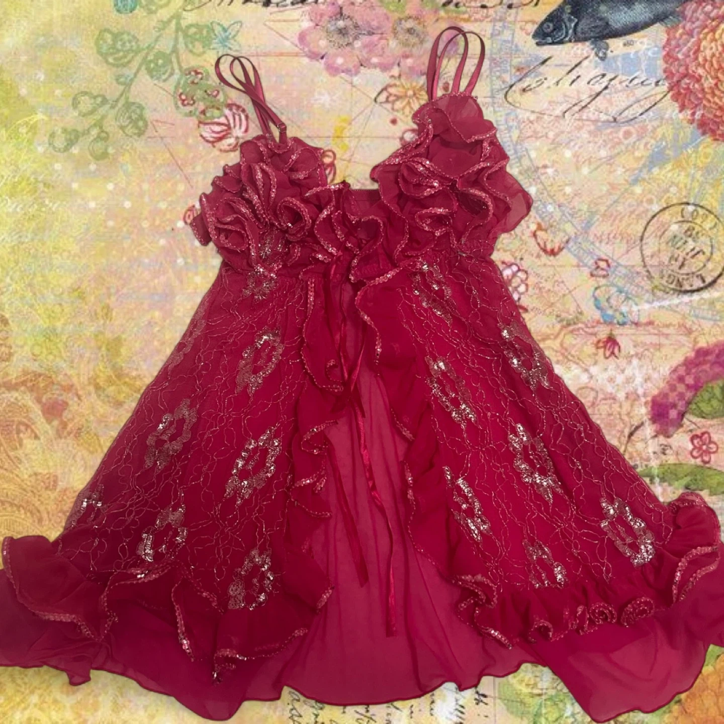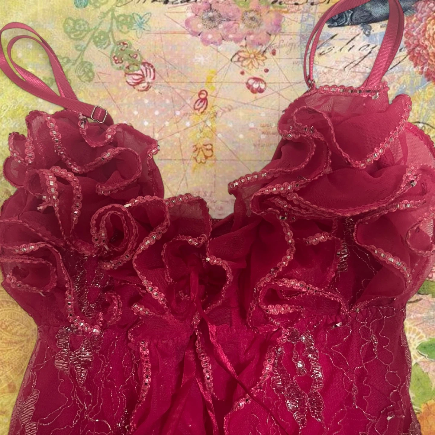 A lovely pink lingerie piece with delicate ruffle detailing. Perfect for adding a touch of elegance to your wardrobe!