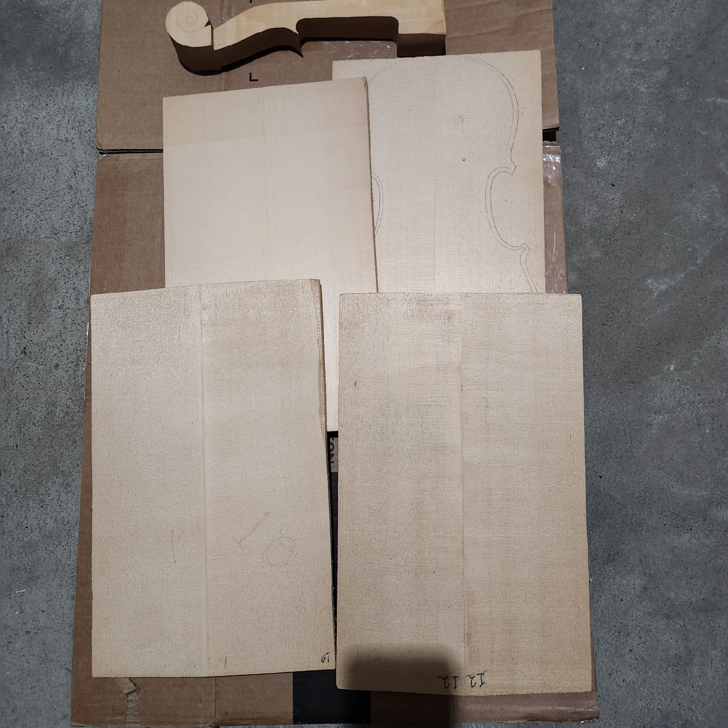 Selling wood pieces for violin making. These pieces appear to be made of maple and spruce. Perfect for anyone looking to craft their own instrument! tops are high quality wood. my father use to make instruments..