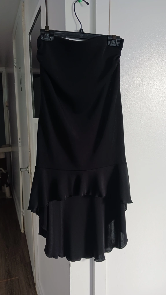 1000+Selling a cute black strapless dress from Urban Behavior. It features a ruffle detail at the bottom. Perfect for a night out!