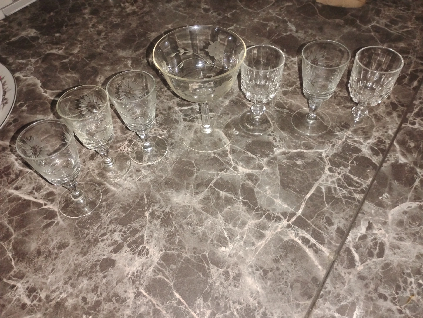 Vintage Etched Glass Stemware Set